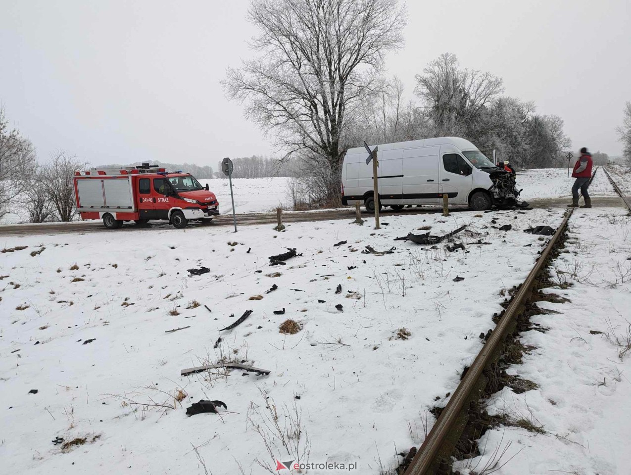 Wypadek na przejeździe kolejowym pod Czerwinem [10.01.2024] - zdjęcie #8 - eOstroleka.pl