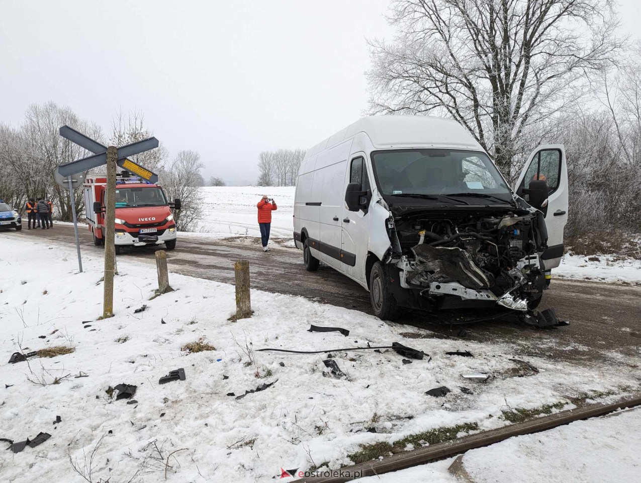 Wypadek na przejeździe kolejowym pod Czerwinem [10.01.2024] - zdjęcie #3 - eOstroleka.pl